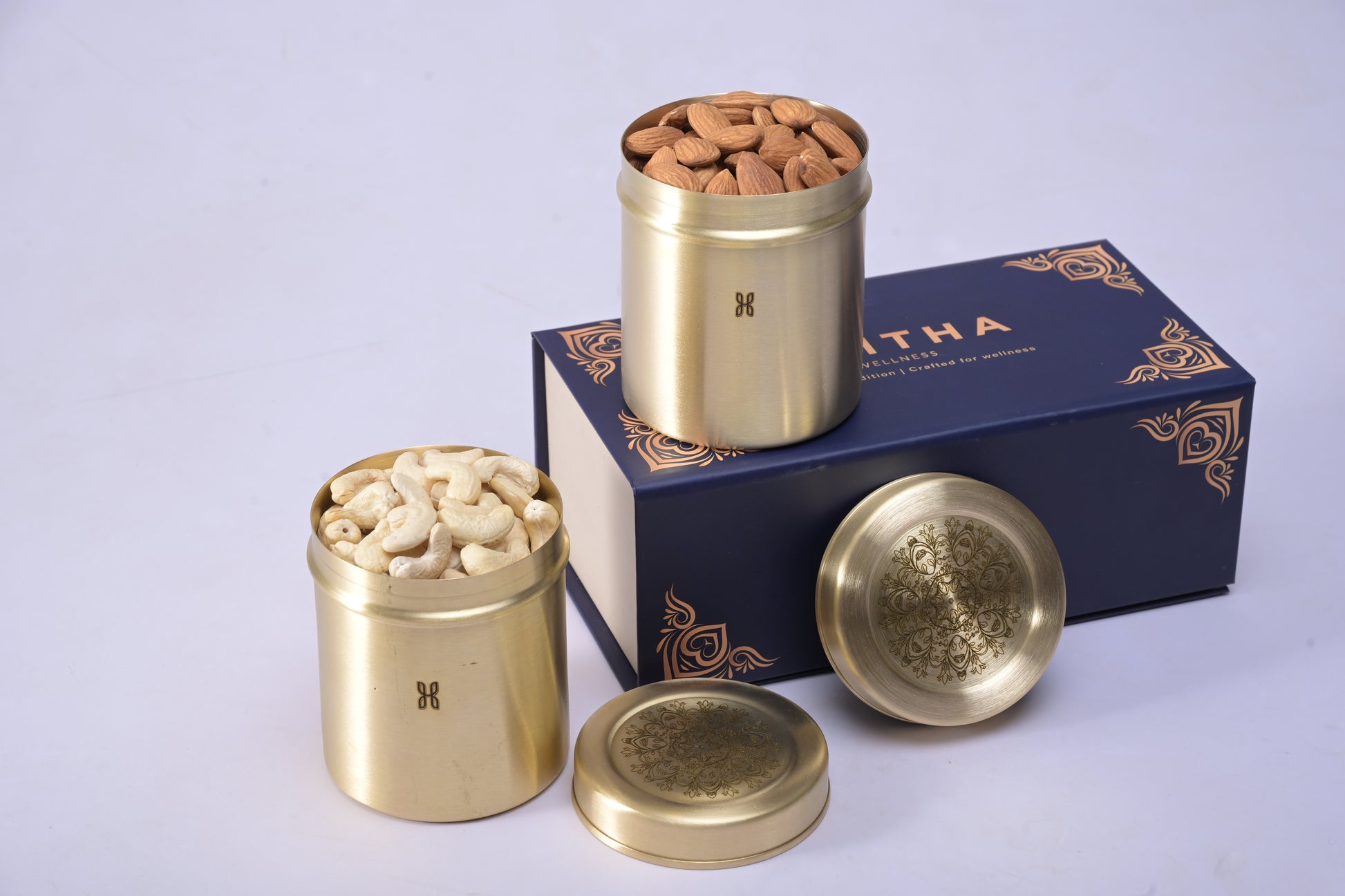 The Magizh Storage Container is more than a utility piece — it is a keeper of happiness, memories, and abundance. In Tamil, Magizh means joy and delight, perfectly reflecting the treasures you choose to preserve inside. Crafted in radiant brass, it blends heritage with modern elegance, making every moment of use feel special.